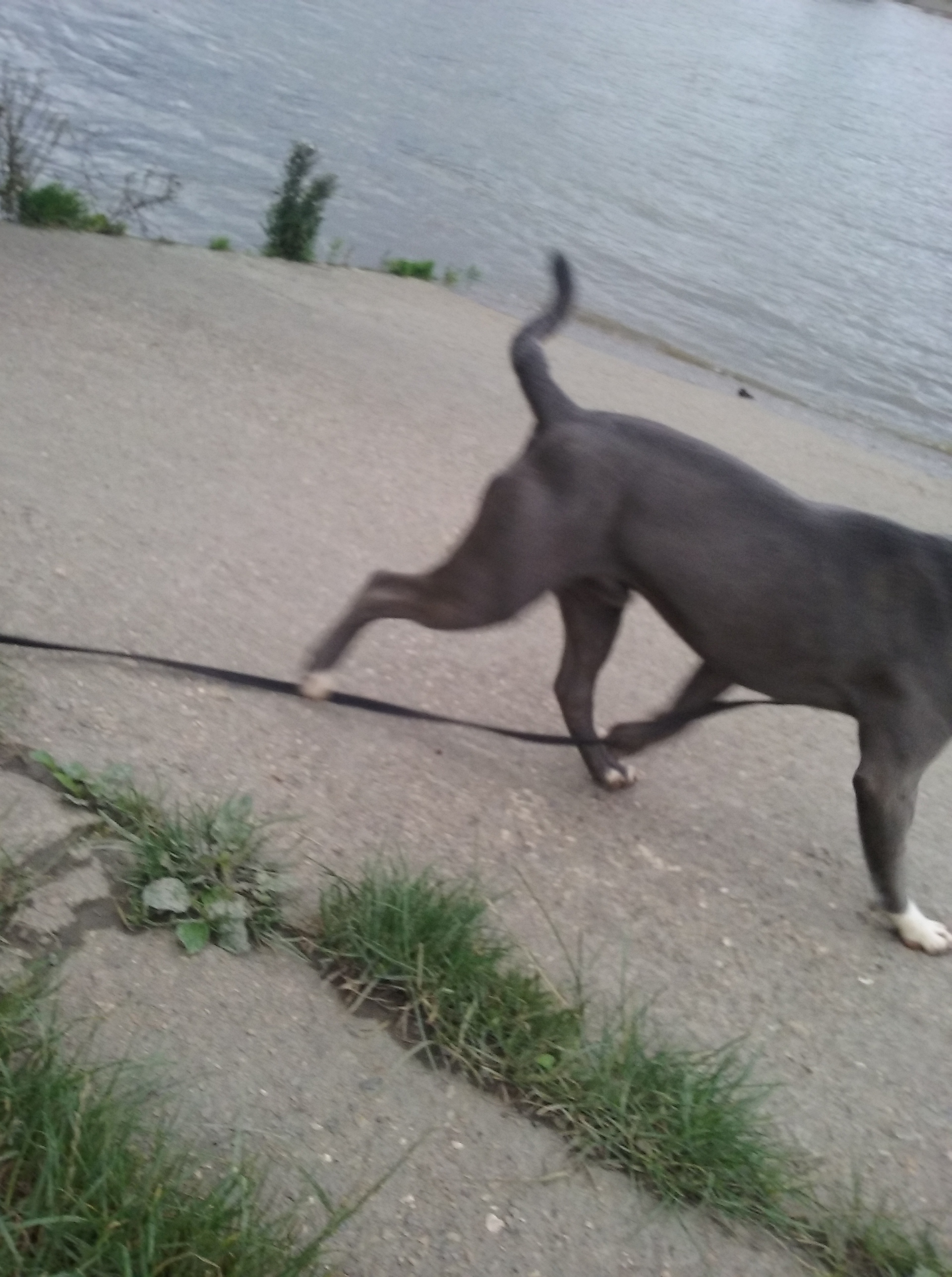 Bafo the male Staffordshire Bull Terrier by the Thames