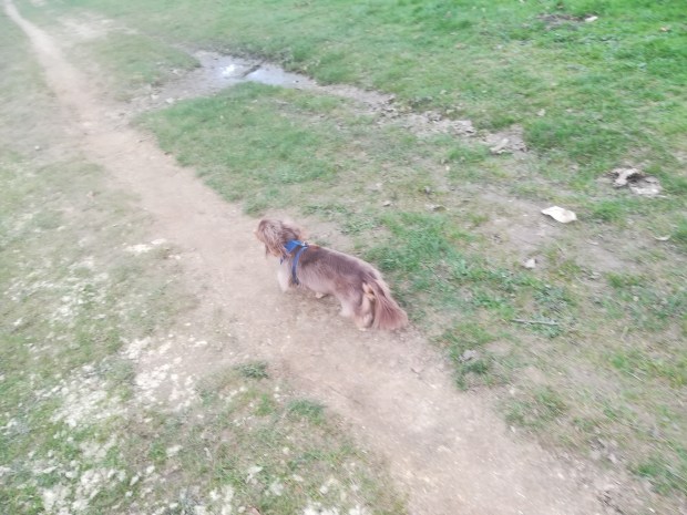 Rupert, the Miniature long-haired Dachshund, happily out for his dog Day Care and enjoying the weather !